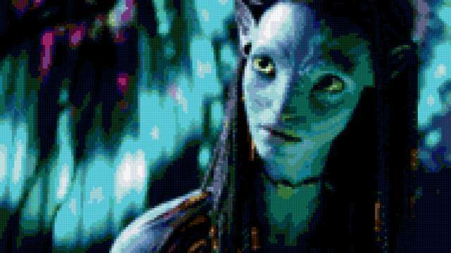 Ориентировочно так, схема вышивки «Neytiri», созданная автором Julisa, будет выглядеть при отшиве на канве. Размер данной вышивки равен 190x107 крестов, при этом используется 47 цветов. К несчастью, автор не назначил для схемы ключевые слова. Также, вы можете взглянуть на оригинальную картинку, соответствующую данной схеме вышивки.