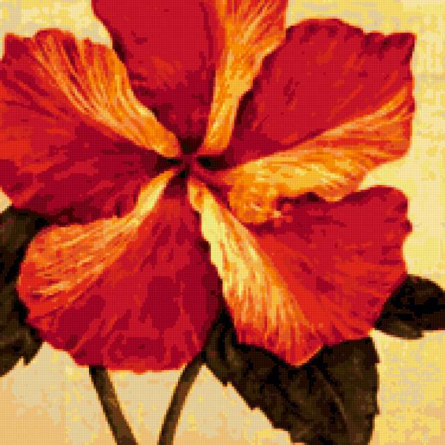 Ориентировочно так, схема вышивки «Orange Flower», созданная автором pandreevska, будет выглядеть при отшиве на канве. Размер данной вышивки равен 190x190 крестов, при этом используется 37 цветов. Ключевые слова, по которым можно найти эту схему: flowers, decoration, orange. Также, вы можете взглянуть на оригинальную картинку, соответствующую данной схеме вышивки.