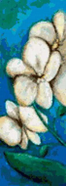 Ориентировочно так, схема вышивки «Orchids Stripe Trio», созданная автором pandreevska, будет выглядеть при отшиве на канве. Размер данной вышивки равен 68x190 крестов, при этом используется 50 цветов. Ключевые слова, по которым можно найти эту схему: flower, decoration, trio. Также, вы можете взглянуть на оригинальную картинку, соответствующую данной схеме вышивки.