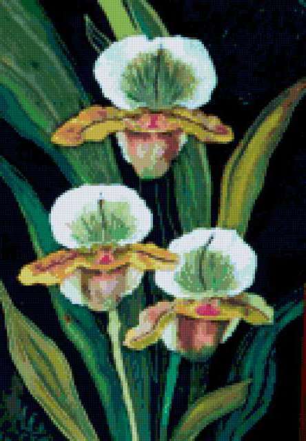 Ориентировочно так, схема вышивки «Orhideja», созданная автором Lamisa, будет выглядеть при отшиве на канве. Размер данной вышивки равен 132x190 крестов, при этом используется 74 цветов. Ключевые слова, по которым можно найти эту схему: цветы, орхидея. Также, вы можете взглянуть на оригинальную картинку, соответствующую данной схеме вышивки.