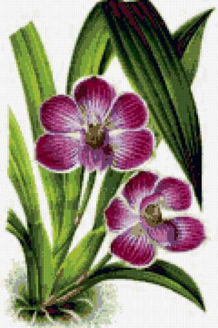 Ориентировочно так, схема вышивки «Orhideja», созданная автором Lamisa, будет выглядеть при отшиве на канве. Размер данной вышивки равен 120x180 крестов, при этом используется 32 цветов. Ключевые слова, по которым можно найти эту схему: цветы, орхидея. Также, вы можете взглянуть на оригинальную картинку, соответствующую данной схеме вышивки.