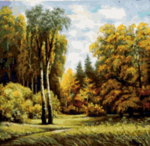 Ориентировочно так, схема вышивки «Osen», созданная автором lukrecija12, будет выглядеть при отшиве на канве. Размер данной вышивки равен 190x185 крестов, при этом используется 47 цветов. Ключевые слова, по которым можно найти эту схему: priroda. Также, вы можете взглянуть на оригинальную картинку, соответствующую данной схеме вышивки.