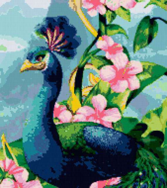 Ориентировочно так, схема вышивки «Pava», созданная автором lukrecija12, будет выглядеть при отшиве на канве. Размер данной вышивки равен 169x190 крестов, при этом используется 32 цветов. Ключевые слова, по которым можно найти эту схему: pticy. Также, вы можете взглянуть на оригинальную картинку, соответствующую данной схеме вышивки.