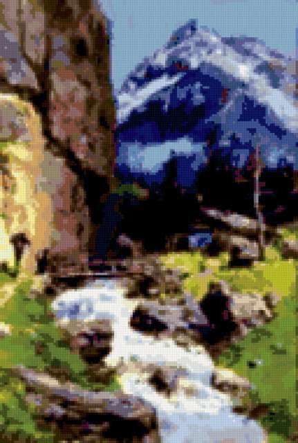 Ориентировочно так, схема вышивки «Pejzaz», созданная автором lukrecija12, будет выглядеть при отшиве на канве. Размер данной вышивки равен 128x190 крестов, при этом используется 62 цветов. Ключевые слова, по которым можно найти эту схему: pejzaz. Также, вы можете взглянуть на оригинальную картинку, соответствующую данной схеме вышивки.