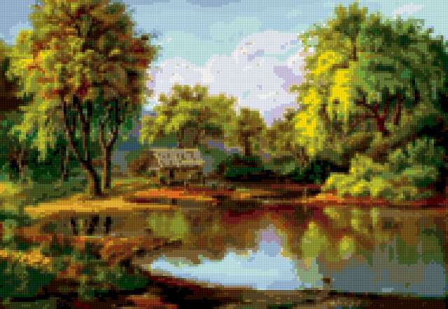 Ориентировочно так, схема вышивки «Pejzaz», созданная автором lukrecija12, будет выглядеть при отшиве на канве. Размер данной вышивки равен 190x131 крестов, при этом используется 55 цветов. Ключевые слова, по которым можно найти эту схему: pejzaz. Также, вы можете взглянуть на оригинальную картинку, соответствующую данной схеме вышивки.