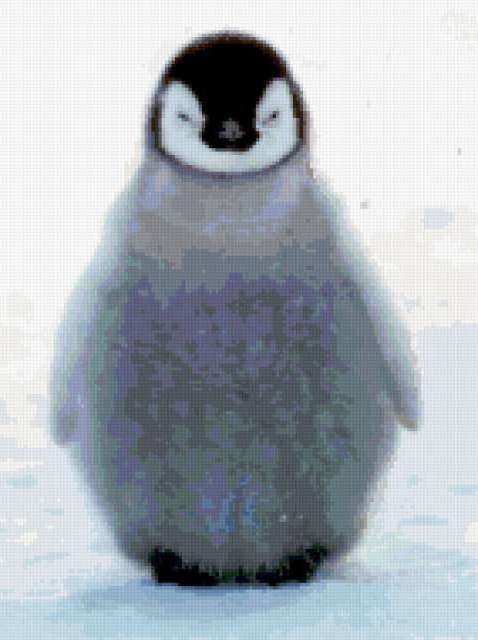 Ориентировочно так, схема вышивки «Penguin Baby», созданная автором pandreevska, будет выглядеть при отшиве на канве. Размер данной вышивки равен 142x190 крестов, при этом используется 56 цветов. Ключевые слова, по которым можно найти эту схему: любовь, семья, животные. Также, вы можете взглянуть на оригинальную картинку, соответствующую данной схеме вышивки.