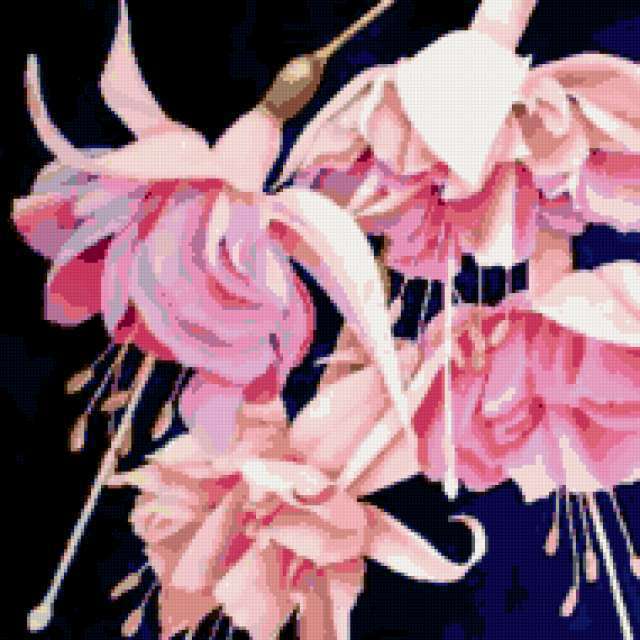 Ориентировочно так, схема вышивки «Pink flowers», созданная автором lukrecija12, будет выглядеть при отшиве на канве. Размер данной вышивки равен 190x190 крестов, при этом используется 38 цветов. Ключевые слова, по которым можно найти эту схему: flower. Также, вы можете взглянуть на оригинальную картинку, соответствующую данной схеме вышивки.