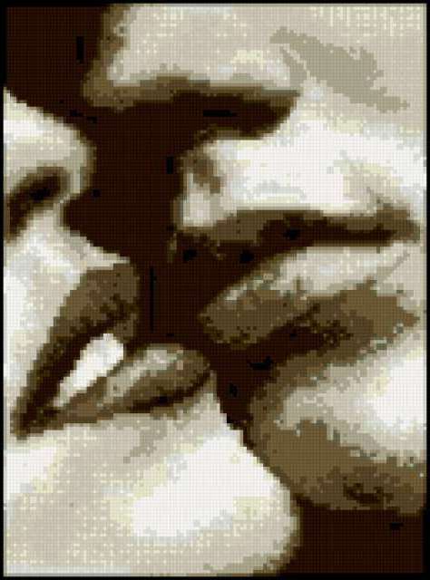 Ориентировочно так, схема вышивки «Poceluj», созданная автором lukrecija12, будет выглядеть при отшиве на канве. Размер данной вышивки равен 129x174 крестов, при этом используется 16 цветов. Ключевые слова, по которым можно найти эту схему: para. Также, вы можете взглянуть на оригинальную картинку, соответствующую данной схеме вышивки.