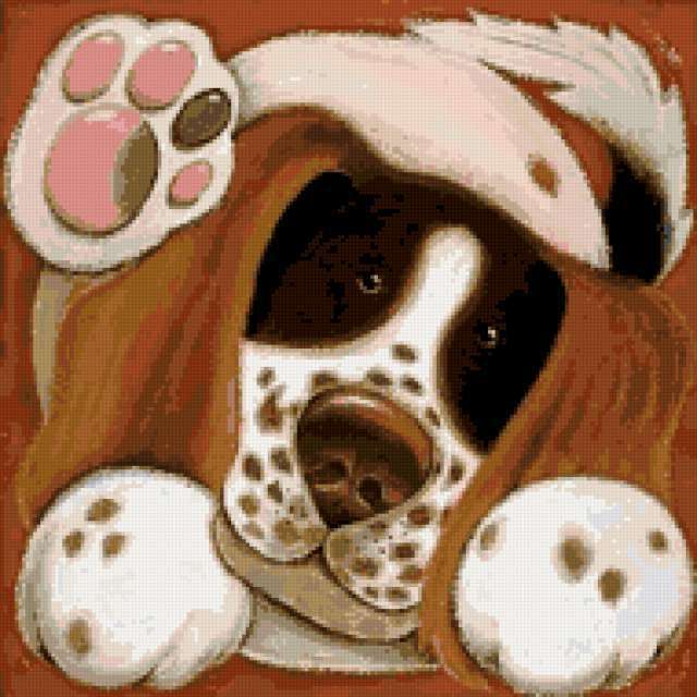 Ориентировочно так, схема вышивки «Podushka V3», созданная автором Lamisa, будет выглядеть при отшиве на канве. Размер данной вышивки равен 190x190 крестов, при этом используется 42 цветов. Ключевые слова, по которым можно найти эту схему: подушка, животные, собаки. Также, вы можете взглянуть на оригинальную картинку, соответствующую данной схеме вышивки.