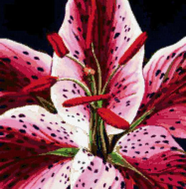 Ориентировочно так, схема вышивки «Podushka», созданная автором eldi_22, будет выглядеть при отшиве на канве. Размер данной вышивки равен 187x190 крестов, при этом используется 40 цветов. Ключевые слова, по которым можно найти эту схему: podushka, подушка, лилия, цветы. Также, вы можете взглянуть на оригинальную картинку, соответствующую данной схеме вышивки.