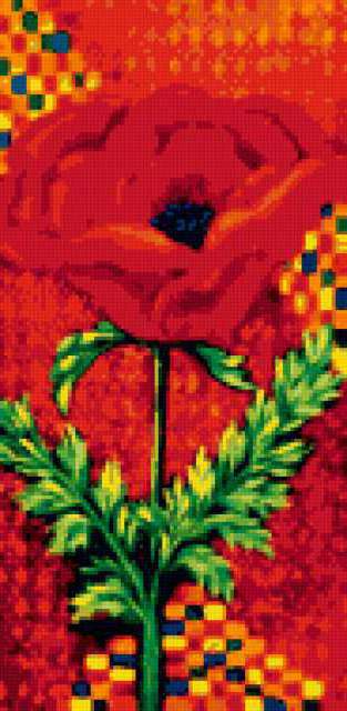 Ориентировочно так, схема вышивки «Poppy», созданная автором lukrecija12, будет выглядеть при отшиве на канве. Размер данной вышивки равен 92x188 крестов, при этом используется 32 цветов. Ключевые слова, по которым можно найти эту схему: flower. Также, вы можете взглянуть на оригинальную картинку, соответствующую данной схеме вышивки.