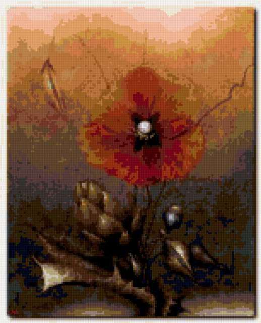 Ориентировочно так, схема вышивки «Poppy», созданная автором lukrecija12, будет выглядеть при отшиве на канве. Размер данной вышивки равен 153x189 крестов, при этом используется 42 цветов. Ключевые слова, по которым можно найти эту схему: flower. Также, вы можете взглянуть на оригинальную картинку, соответствующую данной схеме вышивки.