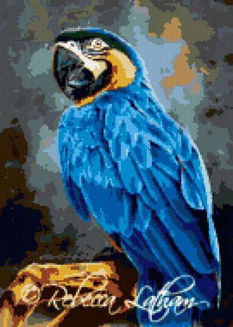 Ориентировочно так, схема вышивки «Popugaj», созданная автором lukrecija12, будет выглядеть при отшиве на канве. Размер данной вышивки равен 135x189 крестов, при этом используется 28 цветов. Ключевые слова, по которым можно найти эту схему: pticy. Также, вы можете взглянуть на оригинальную картинку, соответствующую данной схеме вышивки.