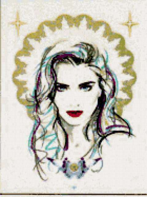 Ориентировочно так, схема вышивки «Portret», созданная автором lukrecija12, будет выглядеть при отшиве на канве. Размер данной вышивки равен 140x187 крестов, при этом используется 48 цветов. Ключевые слова, по которым можно найти эту схему: zenshina, portret. Также, вы можете взглянуть на оригинальную картинку, соответствующую данной схеме вышивки.