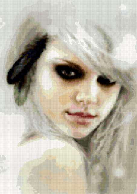 Ориентировочно так, схема вышивки «Portret», созданная автором lukrecija12, будет выглядеть при отшиве на канве. Размер данной вышивки равен 135x190 крестов, при этом используется 47 цветов. Ключевые слова, по которым можно найти эту схему: zenshina, portret. Также, вы можете взглянуть на оригинальную картинку, соответствующую данной схеме вышивки.