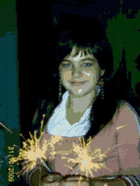 Ориентировочно так, схема вышивки «Portret», созданная автором camara-uara2, будет выглядеть при отшиве на канве. Размер данной вышивки равен 143x190 крестов, при этом используется 31 цветов. К несчастью, автор не назначил для схемы ключевые слова. Также, вы можете взглянуть на оригинальную картинку, соответствующую данной схеме вышивки.