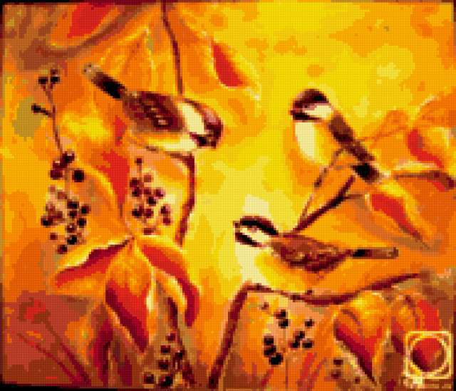 Ориентировочно так, схема вышивки «Ptichki», созданная автором lukrecija12, будет выглядеть при отшиве на канве. Размер данной вышивки равен 190x163 крестов, при этом используется 30 цветов. Ключевые слова, по которым можно найти эту схему: pticy. Также, вы можете взглянуть на оригинальную картинку, соответствующую данной схеме вышивки.