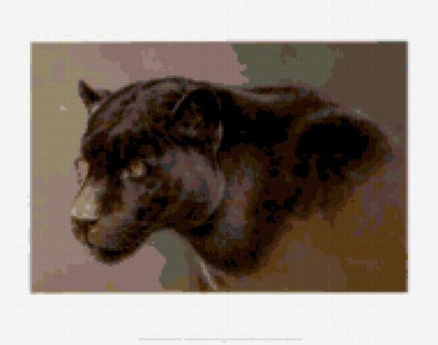 Ориентировочно так, схема вышивки «Puma», созданная автором lukrecija12, будет выглядеть при отшиве на канве. Размер данной вышивки равен 190x150 крестов, при этом используется 32 цветов. Ключевые слова, по которым можно найти эту схему: zivotnye. Также, вы можете взглянуть на оригинальную картинку, соответствующую данной схеме вышивки.