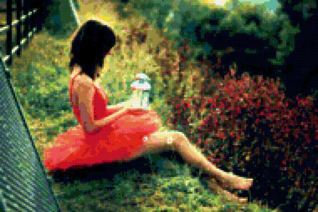 Ориентировочно так, схема вышивки «ROMantic_», созданная автором Asko_, будет выглядеть при отшиве на канве. Размер данной вышивки равен 190x127 крестов, при этом используется 77 цветов. Ключевые слова, по которым можно найти эту схему: милое, романтика, девушка. Также, вы можете взглянуть на оригинальную картинку, соответствующую данной схеме вышивки.