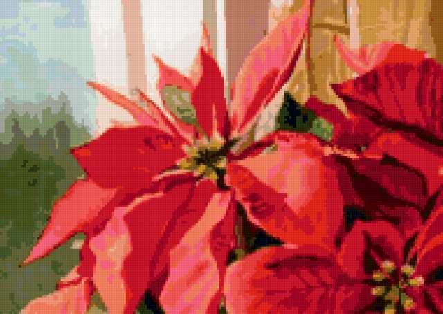 Ориентировочно так, схема вышивки «Red Flowers», созданная автором pandreevska, будет выглядеть при отшиве на канве. Размер данной вышивки равен 190x135 крестов, при этом используется 52 цветов. Ключевые слова, по которым можно найти эту схему: flower, decoration, bright. Также, вы можете взглянуть на оригинальную картинку, соответствующую данной схеме вышивки.