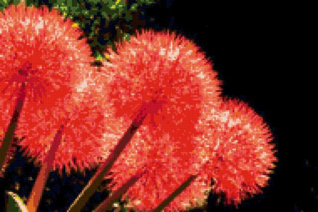 Ориентировочно так, схема вышивки «Red Flowers», созданная автором pandreevska, будет выглядеть при отшиве на канве. Размер данной вышивки равен 190x127 крестов, при этом используется 29 цветов. Ключевые слова, по которым можно найти эту схему: flower, decoration, bright. Также, вы можете взглянуть на оригинальную картинку, соответствующую данной схеме вышивки.