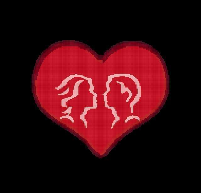 Ориентировочно так, схема вышивки «Red Love», созданная автором me4o, будет выглядеть при отшиве на канве. Размер данной вышивки равен 190x183 крестов, при этом используется 7 цветов. Ключевые слова, по которым можно найти эту схему: love, heart, couple, kiss, пара, любовь. Также, вы можете взглянуть на оригинальную картинку, соответствующую данной схеме вышивки.