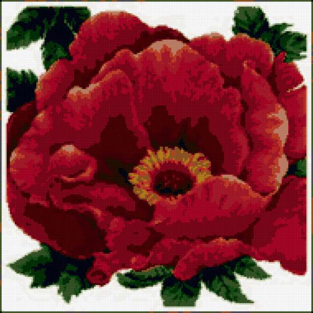 Ориентировочно так, схема вышивки «Red poppy», созданная автором lukrecija12, будет выглядеть при отшиве на канве. Размер данной вышивки равен 190x190 крестов, при этом используется 25 цветов. Ключевые слова, по которым можно найти эту схему: cvety, maki. Также, вы можете взглянуть на оригинальную картинку, соответствующую данной схеме вышивки.