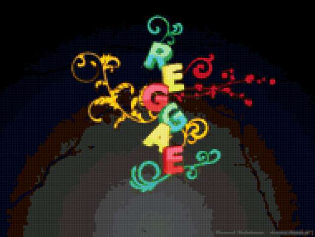 Ориентировочно так, схема вышивки «Reggae», созданная автором natali-01, будет выглядеть при отшиве на канве. Размер данной вышивки равен 190x143 крестов, при этом используется 63 цветов. К несчастью, автор не назначил для схемы ключевые слова. Также, вы можете взглянуть на оригинальную картинку, соответствующую данной схеме вышивки.