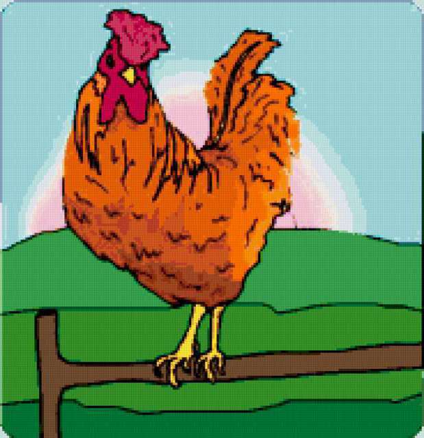 Ориентировочно так, схема вышивки «Rooster», созданная автором aniela, будет выглядеть при отшиве на канве. Размер данной вышивки равен 184x190 крестов, при этом используется 58 цветов. Ключевые слова, по которым можно найти эту схему: farm animals, country. Также, вы можете взглянуть на оригинальную картинку, соответствующую данной схеме вышивки.