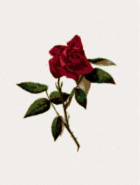 Ориентировочно так, схема вышивки «Rose», созданная автором lukrecija12, будет выглядеть при отшиве на канве. Размер данной вышивки равен 140x185 крестов, при этом используется 25 цветов. Ключевые слова, по которым можно найти эту схему: cvety, roza. Также, вы можете взглянуть на оригинальную картинку, соответствующую данной схеме вышивки.