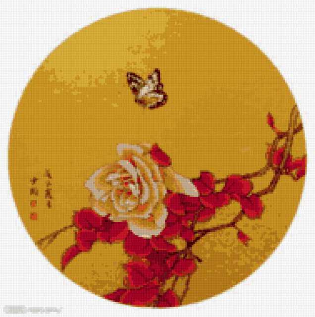 Ориентировочно так, схема вышивки «Rose», созданная автором lukrecija12, будет выглядеть при отшиве на канве. Размер данной вышивки равен 189x190 крестов, при этом используется 29 цветов. Ключевые слова, по которым можно найти эту схему: flower. Также, вы можете взглянуть на оригинальную картинку, соответствующую данной схеме вышивки.