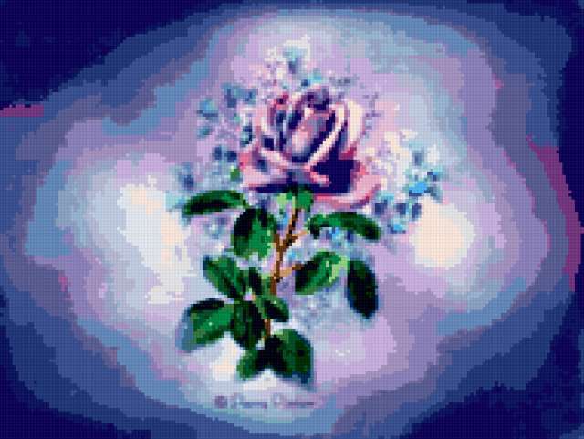 Ориентировочно так, схема вышивки «Rose», созданная автором lukrecija12, будет выглядеть при отшиве на канве. Размер данной вышивки равен 190x143 крестов, при этом используется 41 цветов. Ключевые слова, по которым можно найти эту схему: cvety, roza. Также, вы можете взглянуть на оригинальную картинку, соответствующую данной схеме вышивки.