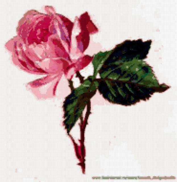 Ориентировочно так, схема вышивки «Rose», созданная автором lukrecija12, будет выглядеть при отшиве на канве. Размер данной вышивки равен 185x190 крестов, при этом используется 38 цветов. Ключевые слова, по которым можно найти эту схему: cvety, roza. Также, вы можете взглянуть на оригинальную картинку, соответствующую данной схеме вышивки.