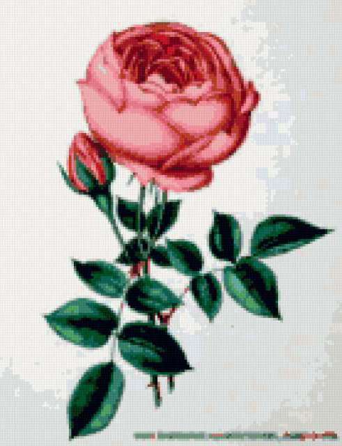 Ориентировочно так, схема вышивки «Rose», созданная автором lukrecija12, будет выглядеть при отшиве на канве. Размер данной вышивки равен 139x181 крестов, при этом используется 31 цветов. Ключевые слова, по которым можно найти эту схему: cvety, roza. Также, вы можете взглянуть на оригинальную картинку, соответствующую данной схеме вышивки.