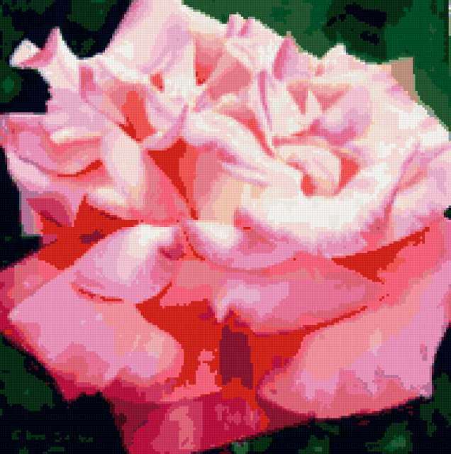 Ориентировочно так, схема вышивки «Rose», созданная автором lukrecija12, будет выглядеть при отшиве на канве. Размер данной вышивки равен 189x190 крестов, при этом используется 33 цветов. Ключевые слова, по которым можно найти эту схему: cvety, roza. Также, вы можете взглянуть на оригинальную картинку, соответствующую данной схеме вышивки.
