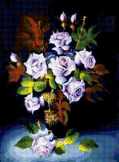 Ориентировочно так, схема вышивки «Roses», созданная автором lukrecija12, будет выглядеть при отшиве на канве. Размер данной вышивки равен 139x189 крестов, при этом используется 47 цветов. Ключевые слова, по которым можно найти эту схему: flower. Также, вы можете взглянуть на оригинальную картинку, соответствующую данной схеме вышивки.