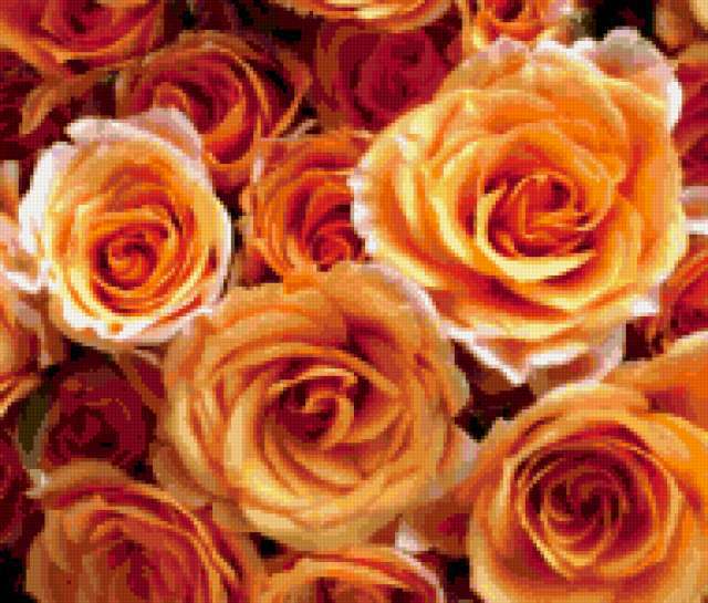 Ориентировочно так, схема вышивки «Roses», созданная автором iborissova, будет выглядеть при отшиве на канве. Размер данной вышивки равен 190x162 крестов, при этом используется 57 цветов. Ключевые слова, по которым можно найти эту схему: рози, цветы. Также, вы можете взглянуть на оригинальную картинку, соответствующую данной схеме вышивки.