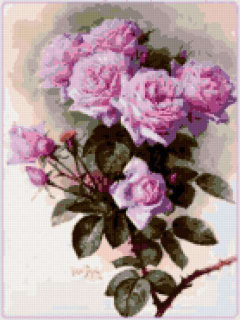 Ориентировочно так, схема вышивки «Roses», созданная автором lukrecija12, будет выглядеть при отшиве на канве. Размер данной вышивки равен 139x185 крестов, при этом используется 41 цветов. Ключевые слова, по которым можно найти эту схему: cvety, flowers. Также, вы можете взглянуть на оригинальную картинку, соответствующую данной схеме вышивки.