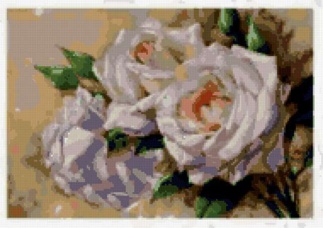Ориентировочно так, схема вышивки «Roses», созданная автором lukrecija12, будет выглядеть при отшиве на канве. Размер данной вышивки равен 190x134 крестов, при этом используется 40 цветов. Ключевые слова, по которым можно найти эту схему: cvety. Также, вы можете взглянуть на оригинальную картинку, соответствующую данной схеме вышивки.