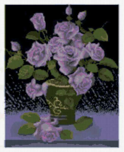 Ориентировочно так, схема вышивки «Roses», созданная автором lukrecija12, будет выглядеть при отшиве на канве. Размер данной вышивки равен 155x190 крестов, при этом используется 28 цветов. Ключевые слова, по которым можно найти эту схему: cvety. Также, вы можете взглянуть на оригинальную картинку, соответствующую данной схеме вышивки.
