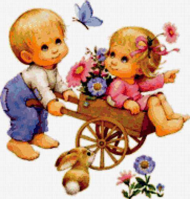 Ориентировочно так, схема вышивки «Ruth Morehead. Милые детишки», созданная автором avevstigneeva, будет выглядеть при отшиве на канве. Размер данной вышивки равен 181x190 крестов, при этом используется 82 цветов. Ключевые слова, по которым можно найти эту схему: живопись, картинки, юмор, детям, детишки. Также, вы можете взглянуть на оригинальную картинку, соответствующую данной схеме вышивки.