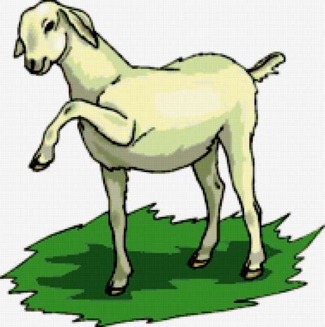 Ориентировочно так, схема вышивки «Sheep», созданная автором aniela, будет выглядеть при отшиве на канве. Размер данной вышивки равен 189x190 крестов, при этом используется 55 цветов. Ключевые слова, по которым можно найти эту схему: farm animals, country. Также, вы можете взглянуть на оригинальную картинку, соответствующую данной схеме вышивки.
