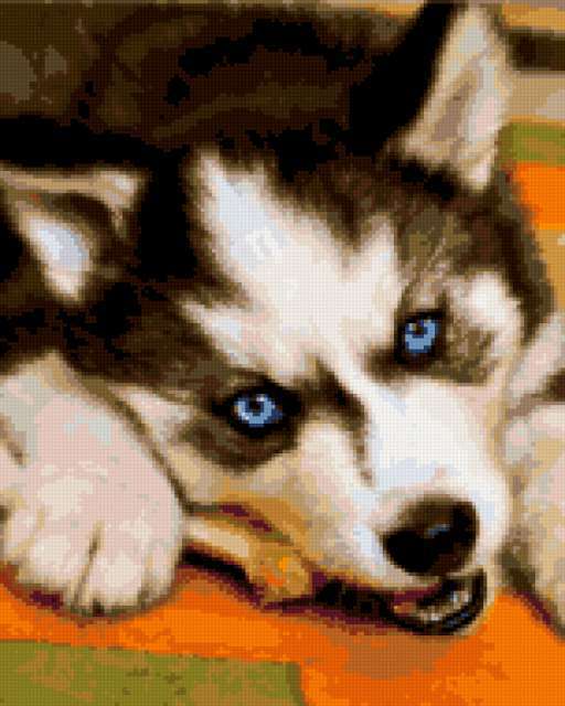 Ориентировочно так, схема вышивки «Siberian Husky», созданная автором ovsyanka, будет выглядеть при отшиве на канве. Размер данной вышивки равен 152x190 крестов, при этом используется 40 цветов. К несчастью, автор не назначил для схемы ключевые слова. Также, вы можете взглянуть на оригинальную картинку, соответствующую данной схеме вышивки.