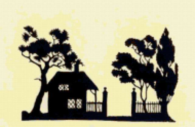 Ориентировочно так, схема вышивки «Silhouette», созданная автором iborissova, будет выглядеть при отшиве на канве. Размер данной вышивки равен 190x124 крестов, при этом используется 44 цветов. Ключевые слова, по которым можно найти эту схему: домик. Также, вы можете взглянуть на оригинальную картинку, соответствующую данной схеме вышивки.