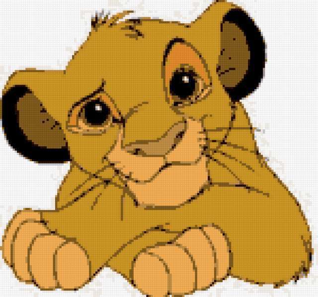 Ориентировочно так, схема вышивки «Simba», созданная автором alisaluna, будет выглядеть при отшиве на канве. Размер данной вышивки равен 150x140 крестов, при этом используется 14 цветов. Ключевые слова, по которым можно найти эту схему: мульты. Также, вы можете взглянуть на оригинальную картинку, соответствующую данной схеме вышивки.