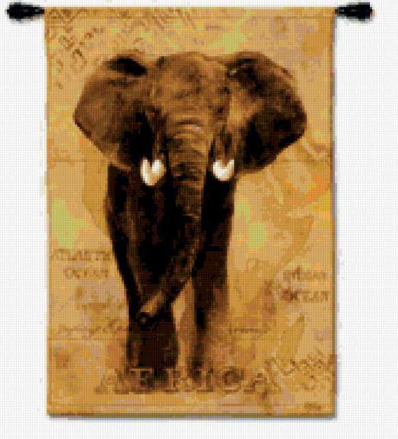 Ориентировочно так, схема вышивки «Slon», созданная автором lukrecija12, будет выглядеть при отшиве на канве. Размер данной вышивки равен 170x187 крестов, при этом используется 40 цветов. Ключевые слова, по которым можно найти эту схему: zivotnye. Также, вы можете взглянуть на оригинальную картинку, соответствующую данной схеме вышивки.