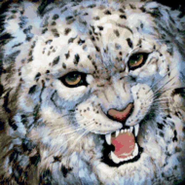 Ориентировочно так, схема вышивки «Snowleopard», созданная автором aniela, будет выглядеть при отшиве на канве. Размер данной вышивки равен 190x190 крестов, при этом используется 78 цветов. Ключевые слова, по которым можно найти эту схему: wildlife, animals, животные. Также, вы можете взглянуть на оригинальную картинку, соответствующую данной схеме вышивки.