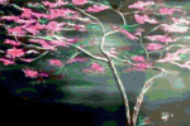 Ориентировочно так, схема вышивки «Spring», созданная автором iborissova, будет выглядеть при отшиве на канве. Размер данной вышивки равен 150x100 крестов, при этом используется 69 цветов. Ключевые слова, по которым можно найти эту схему: природа. Также, вы можете взглянуть на оригинальную картинку, соответствующую данной схеме вышивки.