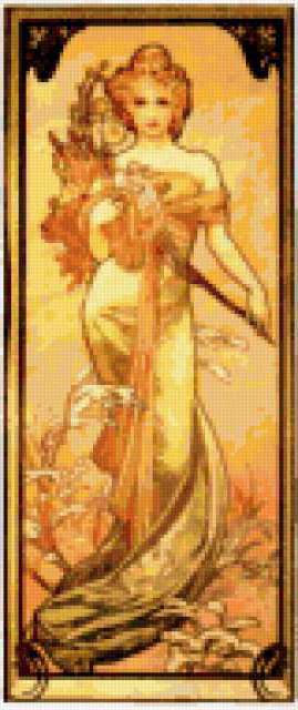 Ориентировочно так, схема вышивки «Spring», созданная автором avevstigneeva, будет выглядеть при отшиве на канве. Размер данной вышивки равен 80x190 крестов, при этом используется 60 цветов. Ключевые слова, по которым можно найти эту схему: живопись, девушка. Также, вы можете взглянуть на оригинальную картинку, соответствующую данной схеме вышивки.