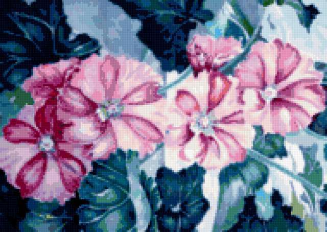 Ориентировочно так, схема вышивки «Stunning Flowers», созданная автором pandreevska, будет выглядеть при отшиве на канве. Размер данной вышивки равен 190x135 крестов, при этом используется 57 цветов. Ключевые слова, по которым можно найти эту схему: flower, stunning, colorful, decoration. Также, вы можете взглянуть на оригинальную картинку, соответствующую данной схеме вышивки.